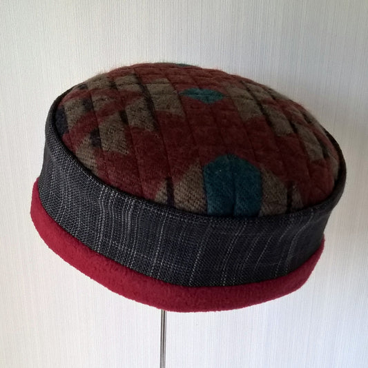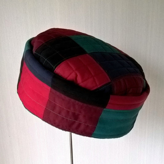 Multi Coloured Patchwork fleece lined pillbox hat