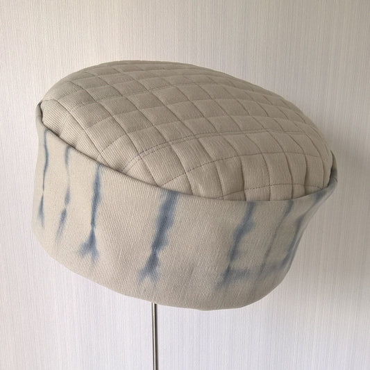 Putty Bedford cord hat with blue shibori tie dye