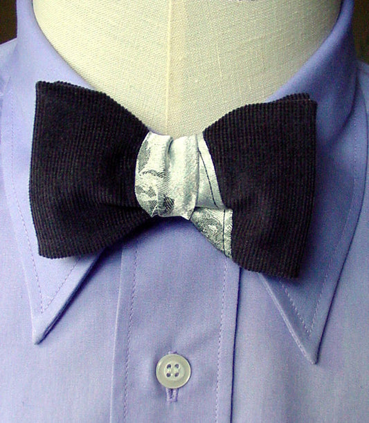 Clip On Tuxedo Bow Tie in Denim Blue Black, 1930s Style Cotton Anniversary