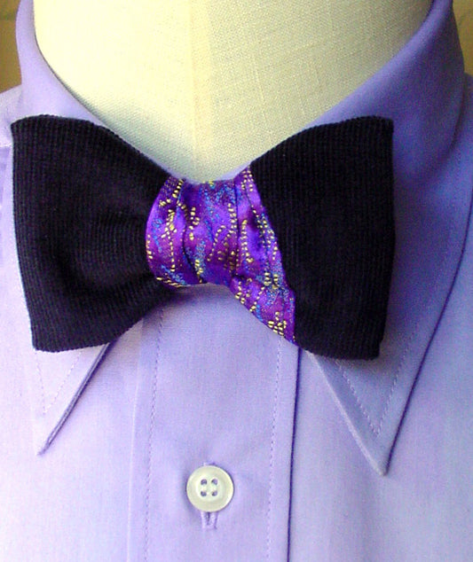 Pre Tied Bow Tie Tie, Purple and Navy Asymmetrical 50s Fashion Men