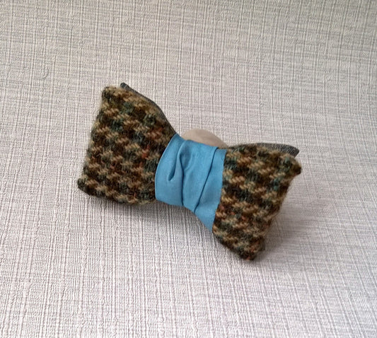 Asymmetrical Clip On Bowtie in Blue Wool Silk, Mens Retro 1950s Style Fashion