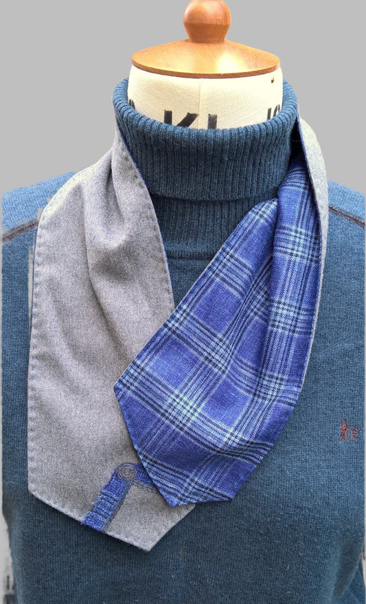 Blue Dogtooth Check Harris Tweed Scarf with cashmere lining