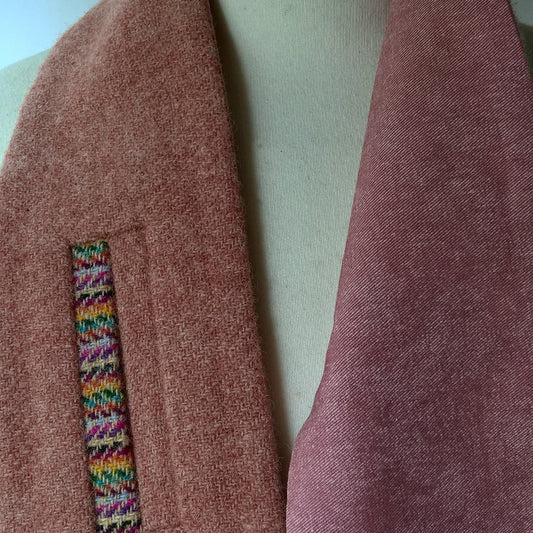 Grey & Red Harris Tweed wool keyhole scarf with cashmere