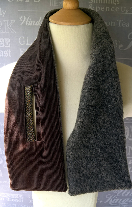 Patchwork corduroy keyhole scarf with marl fleece lining