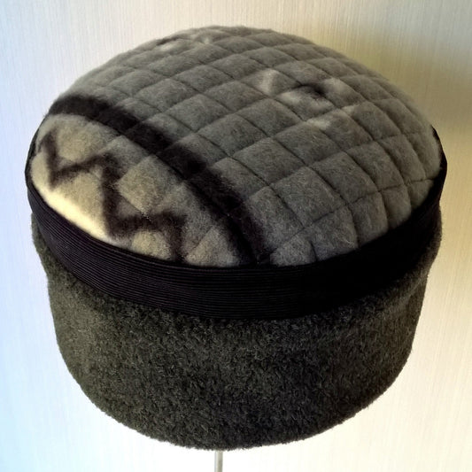 Grey Ethnic Pillbox Hat, Fleece Tribal Winter Cap