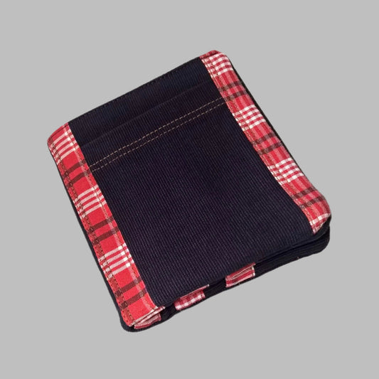 Billfold Card Wallet - navy corduroy & red check trim