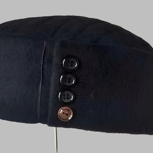 Black Gothic Brimless Hat cashmere with button detail - medium