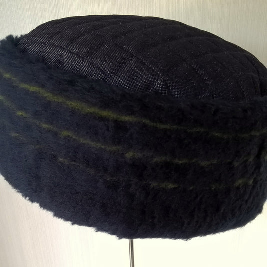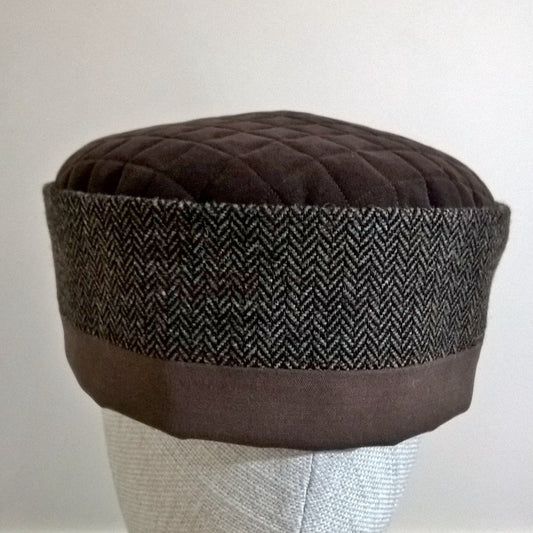 Harris Tweed Pillbox Hat brown herringbone cotton lining - extra large