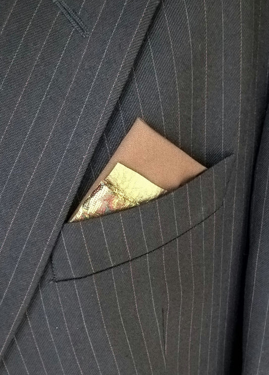Brown and Gold Pre Folded Pocket Square, Mens Wedding Suit Handkerchief