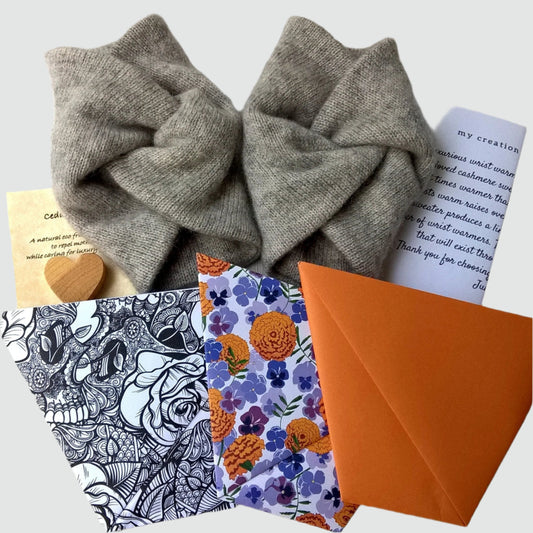 Two Tone Grey Pure Cashmere Wrist Warmer Cuffs