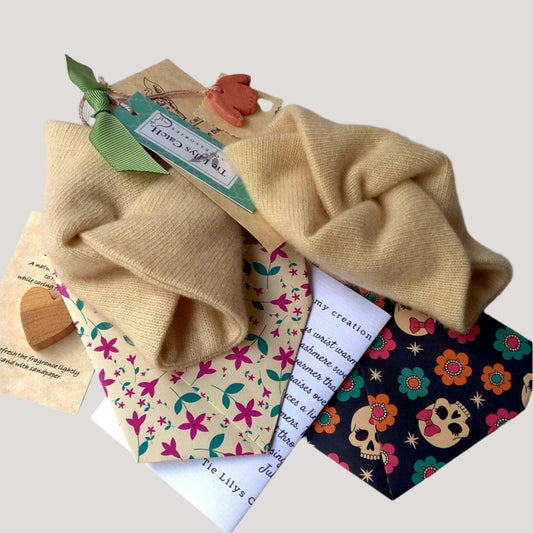 Green Stripe Pure Cashmere Pulse Point Wrist Cuffs with applique heart