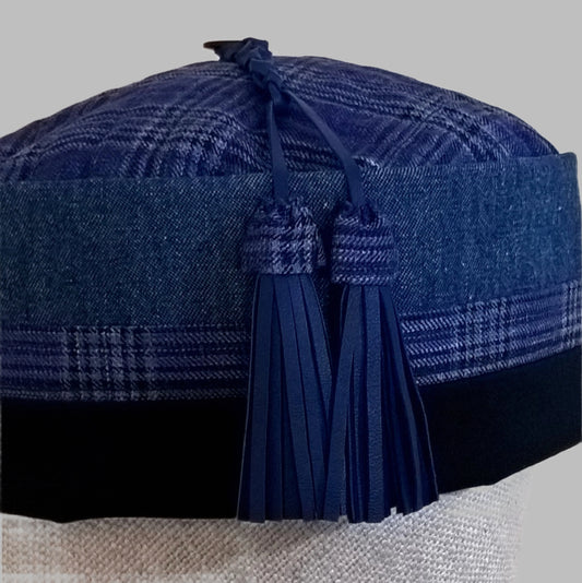 Cobalt Blue Smoking Cap fine wool & cotton with leather tassel