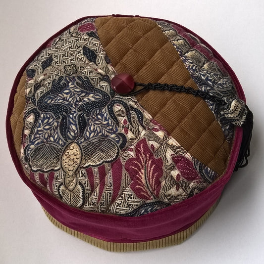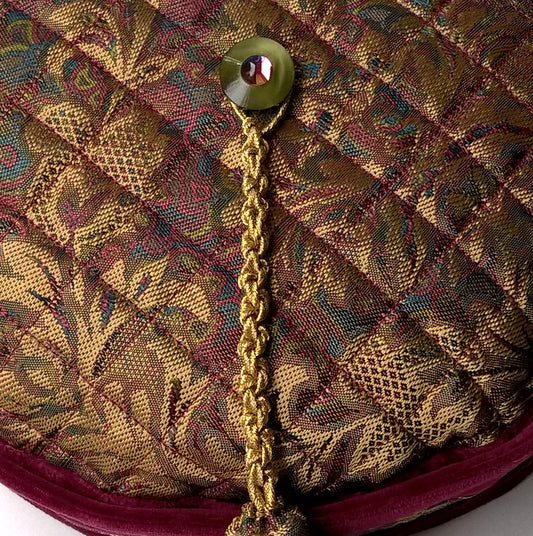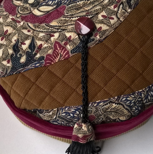 Velvet Smoking Cap burgundy & paisley applique with macrame tassel - size large