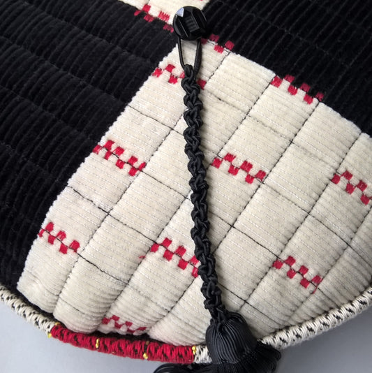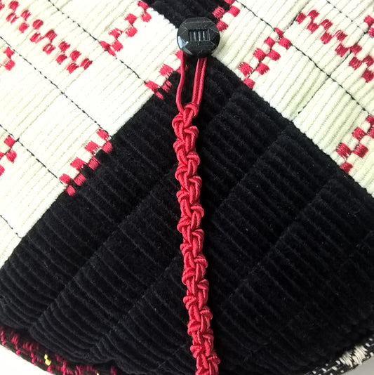 Black & red Ethnic Smoking Cap with macrame tassel - extra large