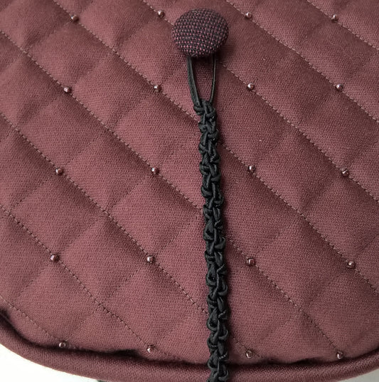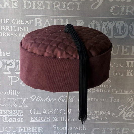 Beaded Smoking Cap in Maroon & Black with macrame Tassel - large