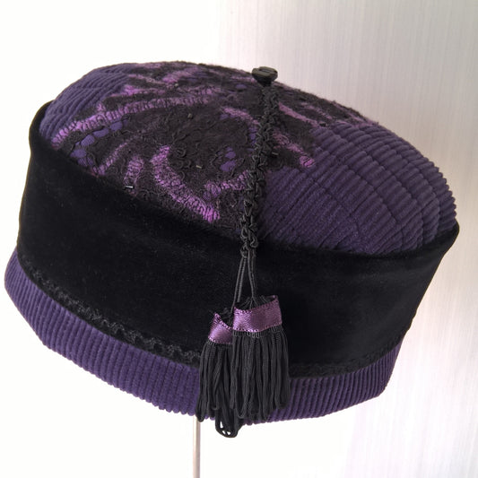 Gothic Purple Velvet Smoking Cap needle felted with tassel - medium
