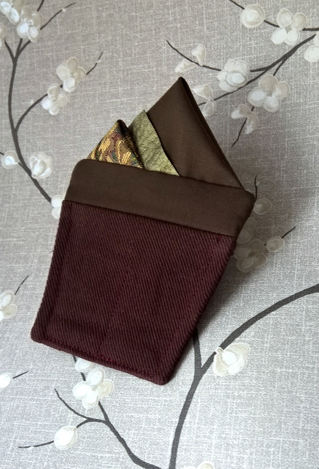 Brown and Gold Pre Folded Pocket Square, Mens Wedding Suit Handkerchief