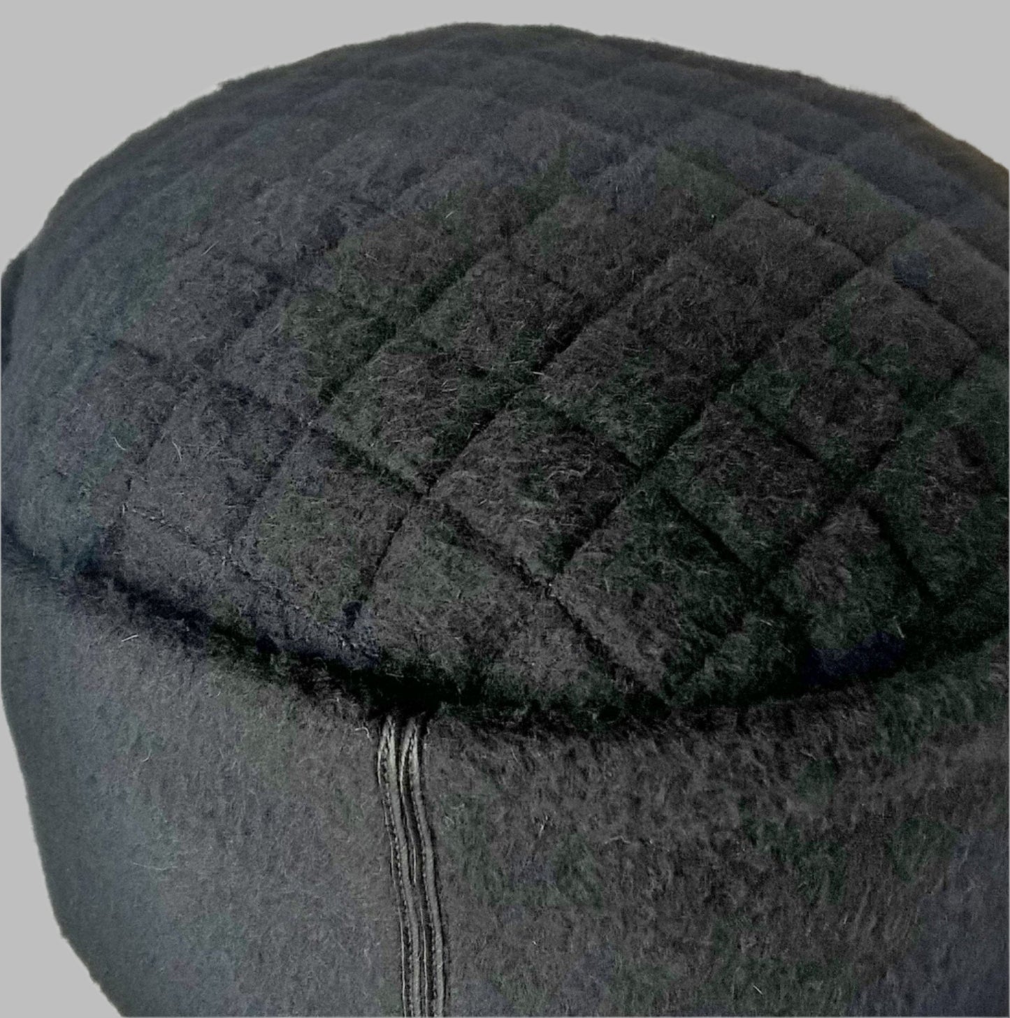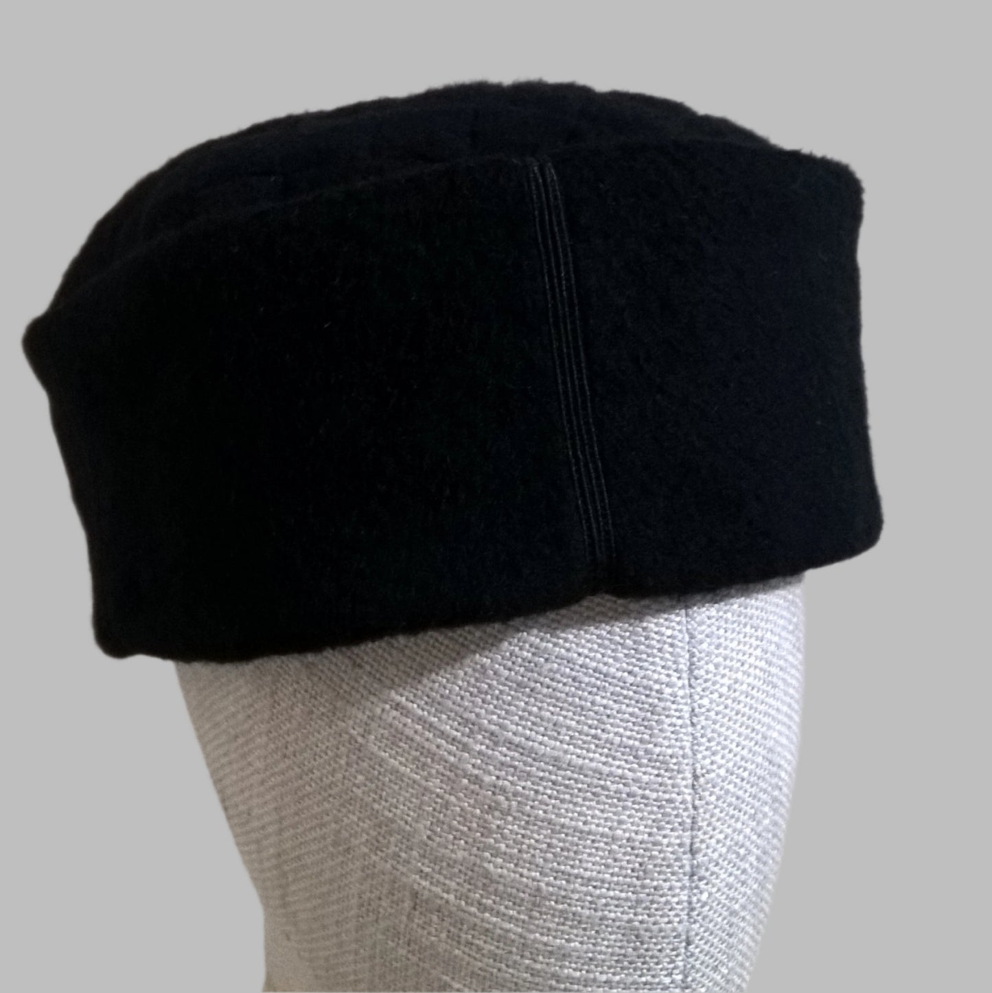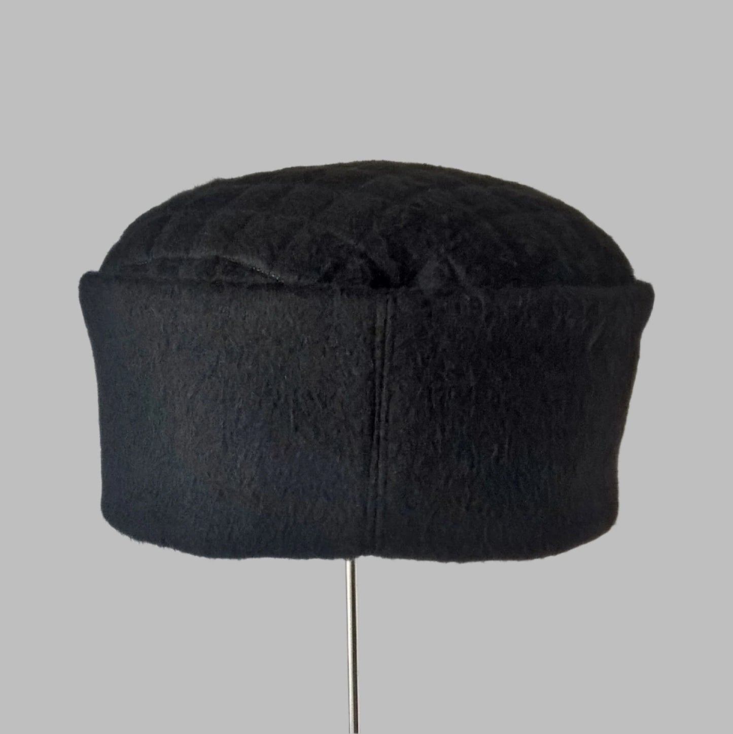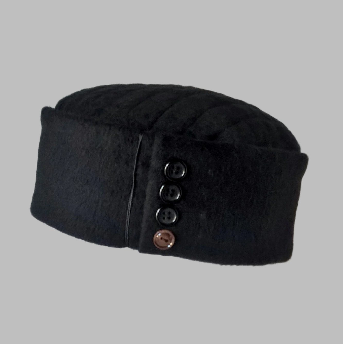 Black Gothic Brimless Hat cashmere with button detail - medium