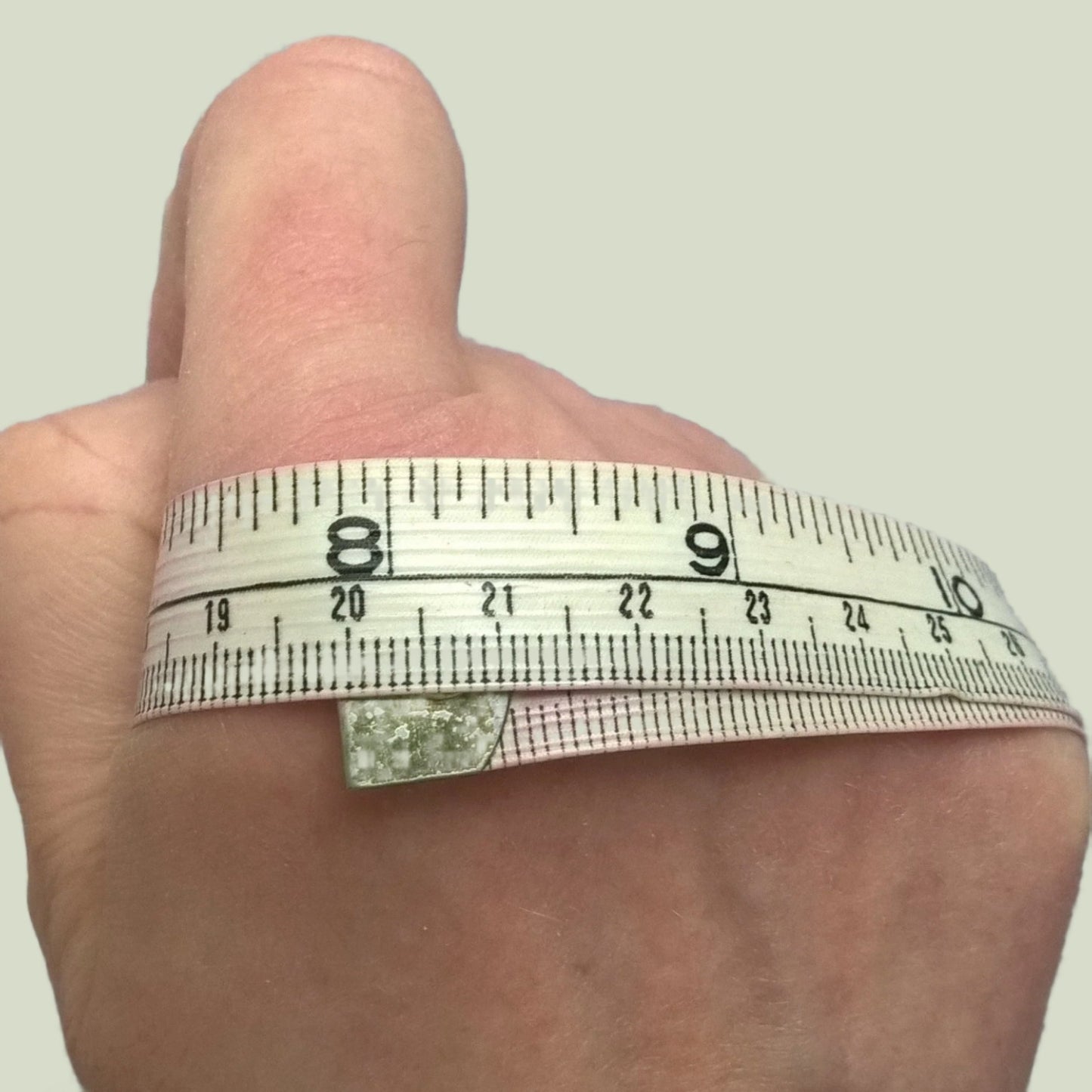 * as a guide measure across the widest part of dominant hand at knuckles.