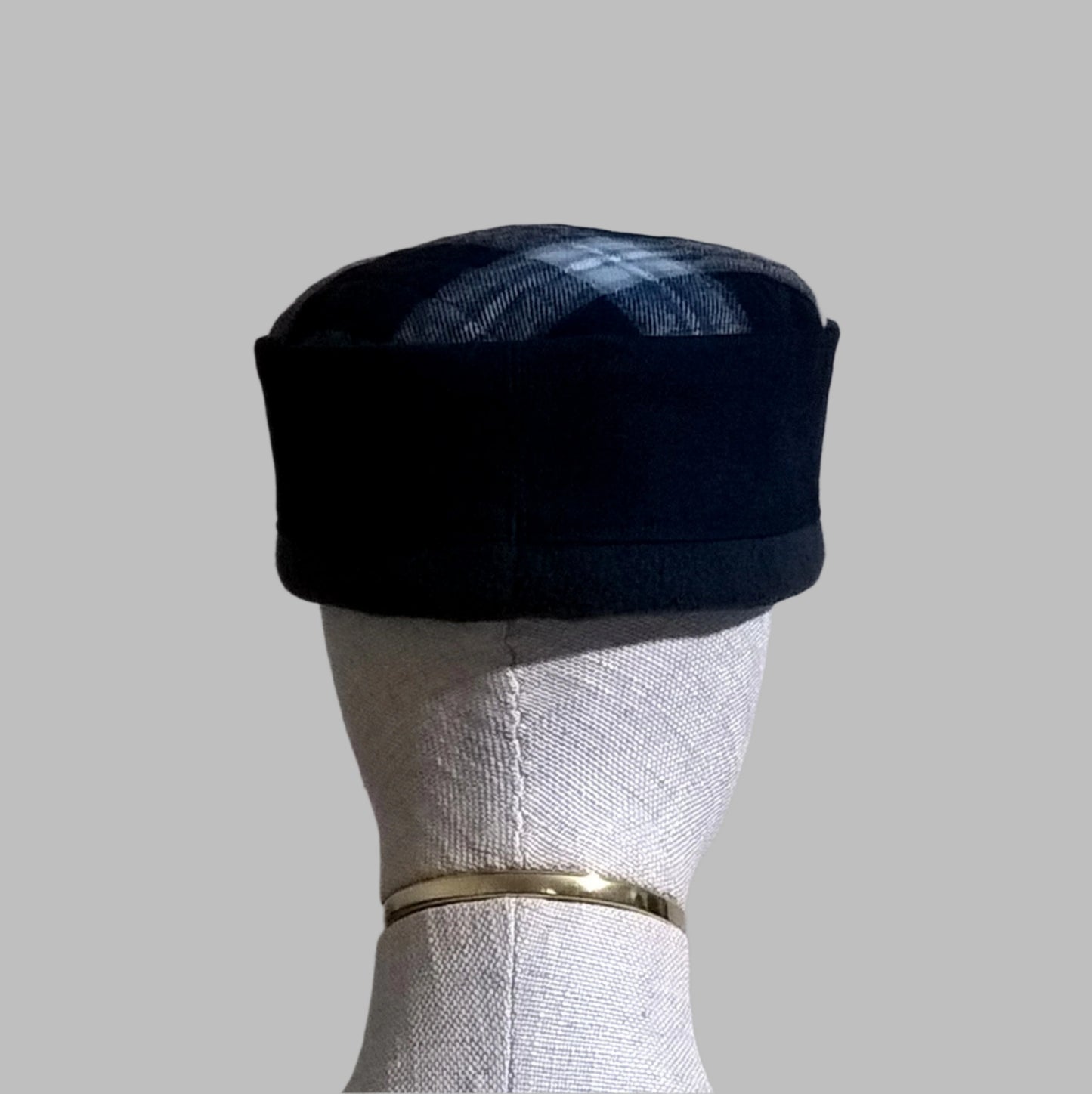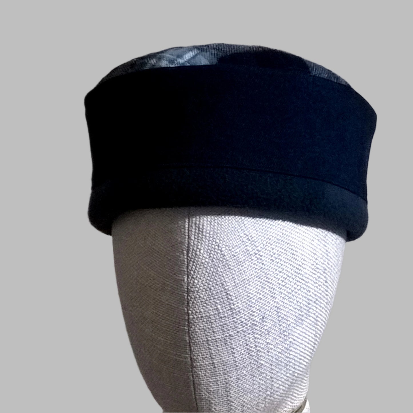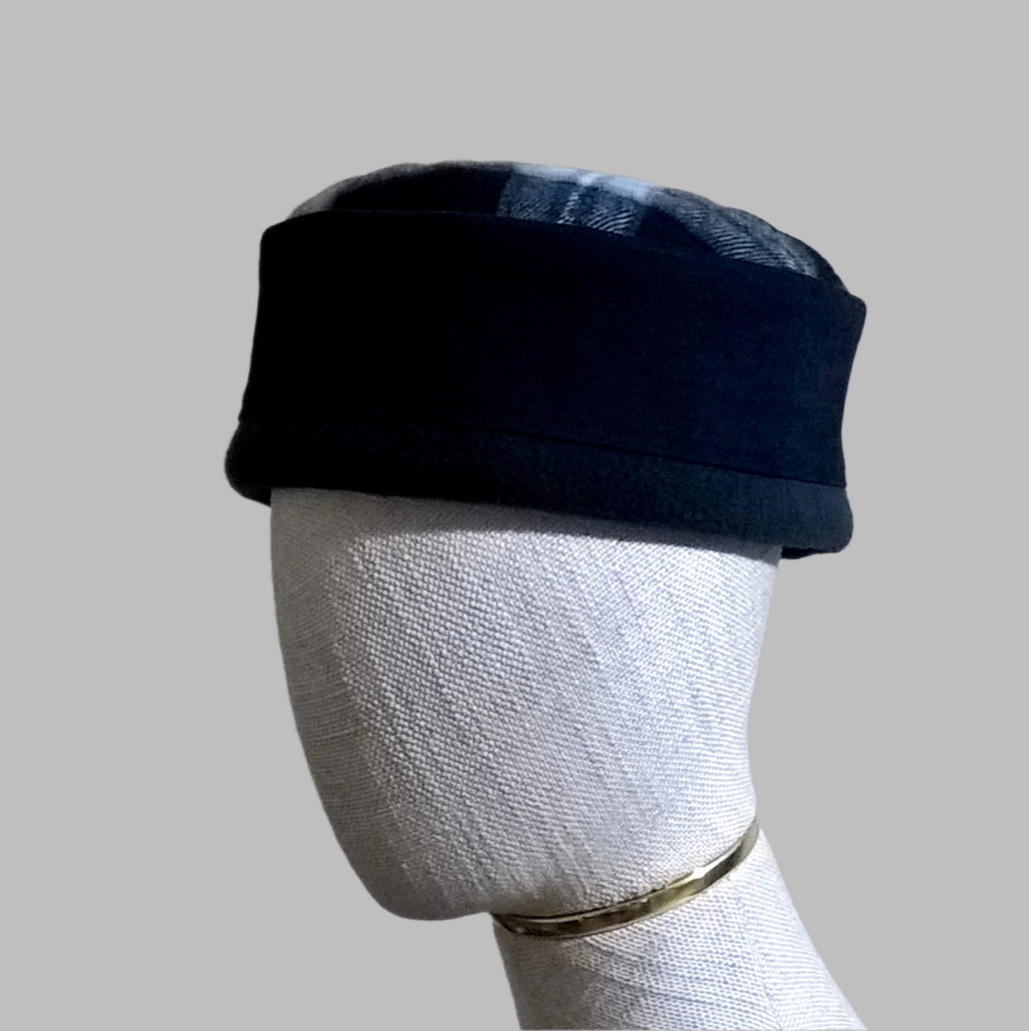 Lumberjack Check Fleece Hat with blue indigo denim crown
