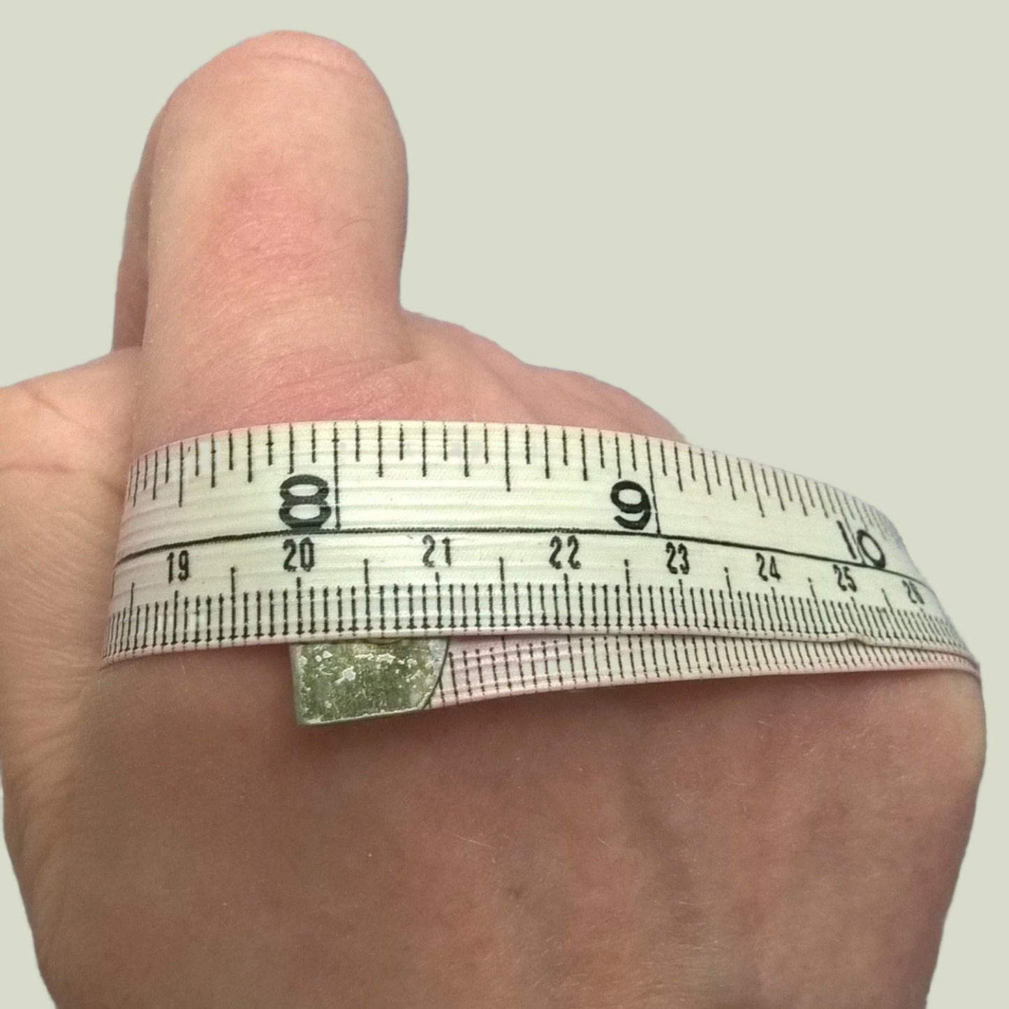 * as a guide measure across the widest part of dominant hand at knuckles.