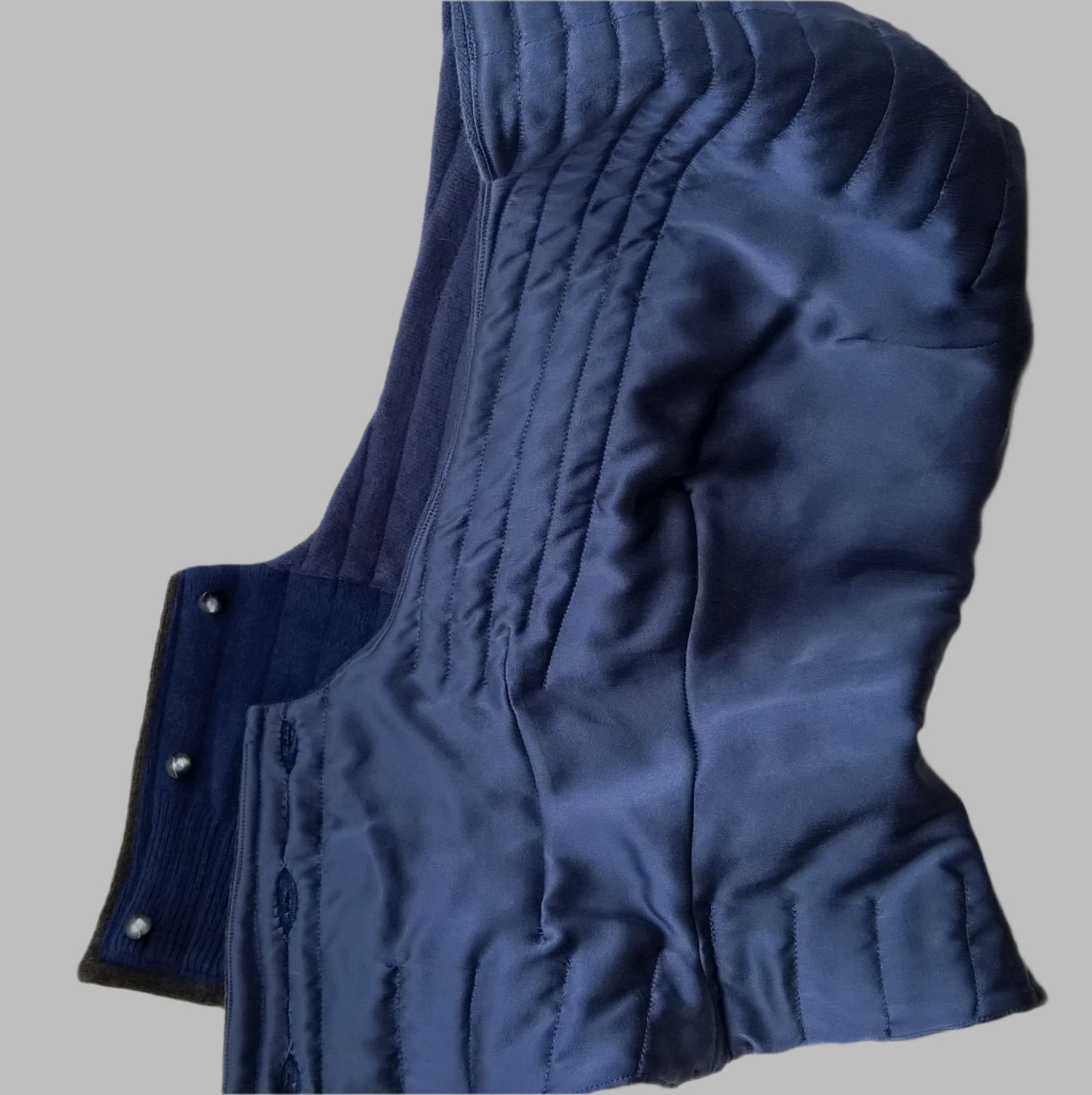 Hood and Neck Warmer in quilted cashmere with silk lining
