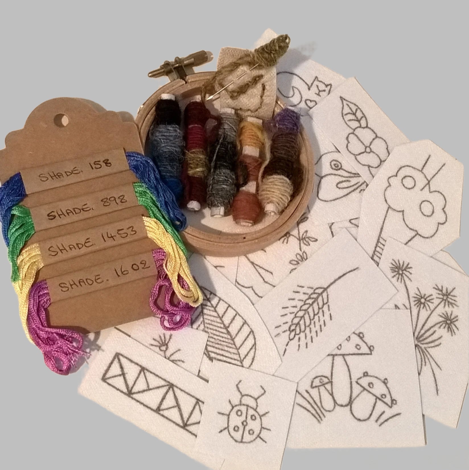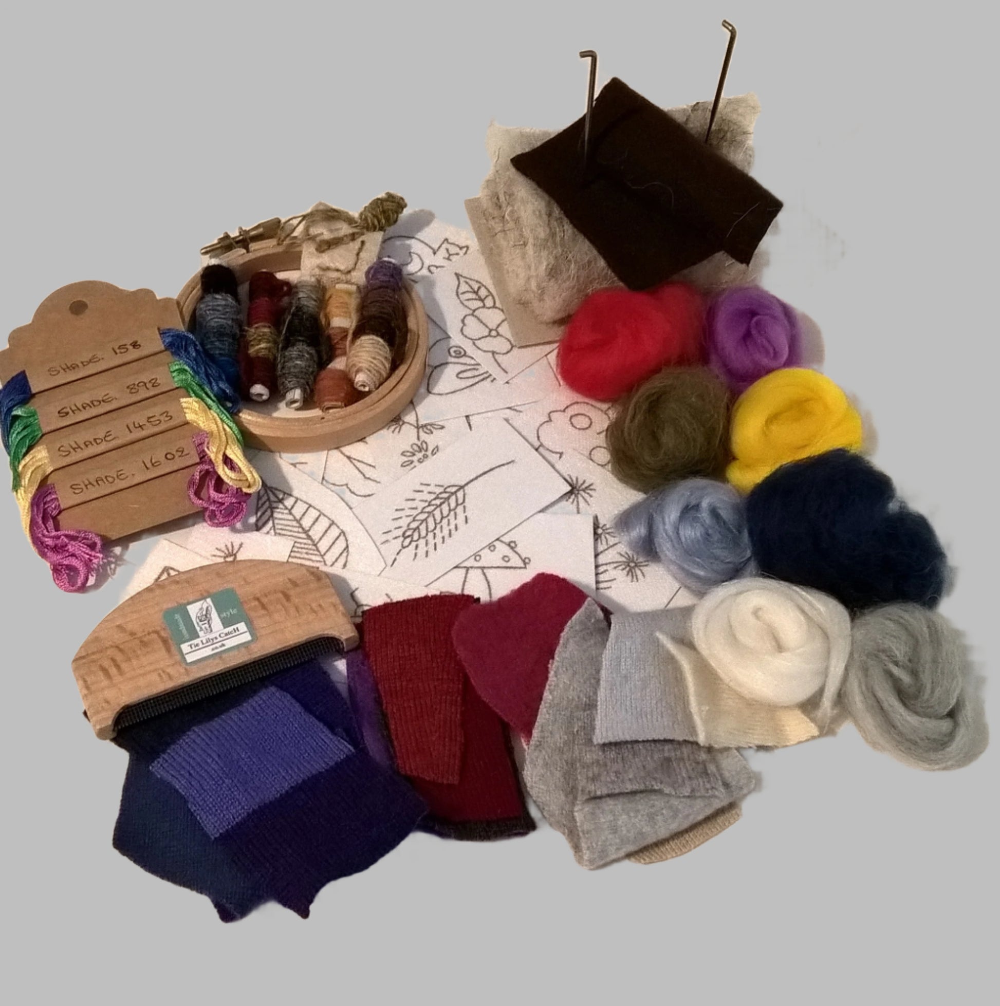 Turn a hole or stain into an opportunity to be creative with visible mending, using one or more of the techniques in this kit, which includes embroidery, patch applique, and needle-felting, a repair can be wearable art.