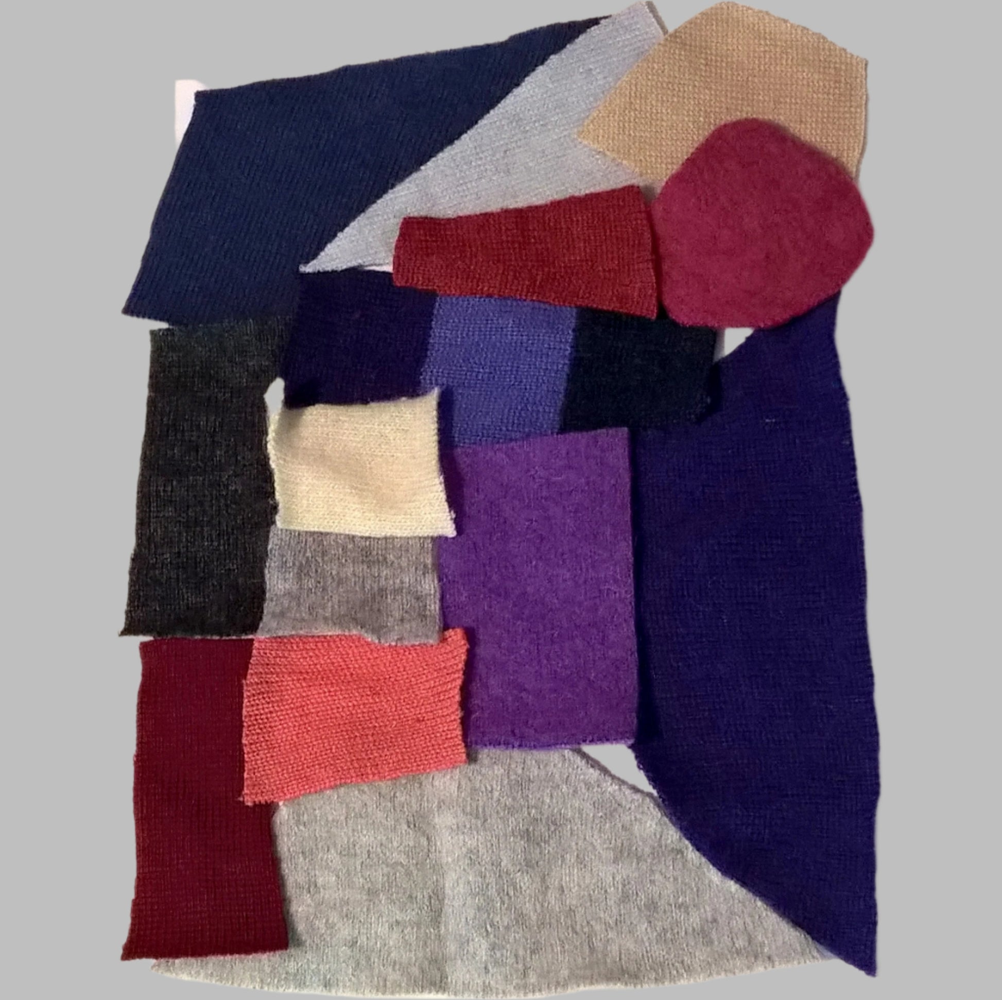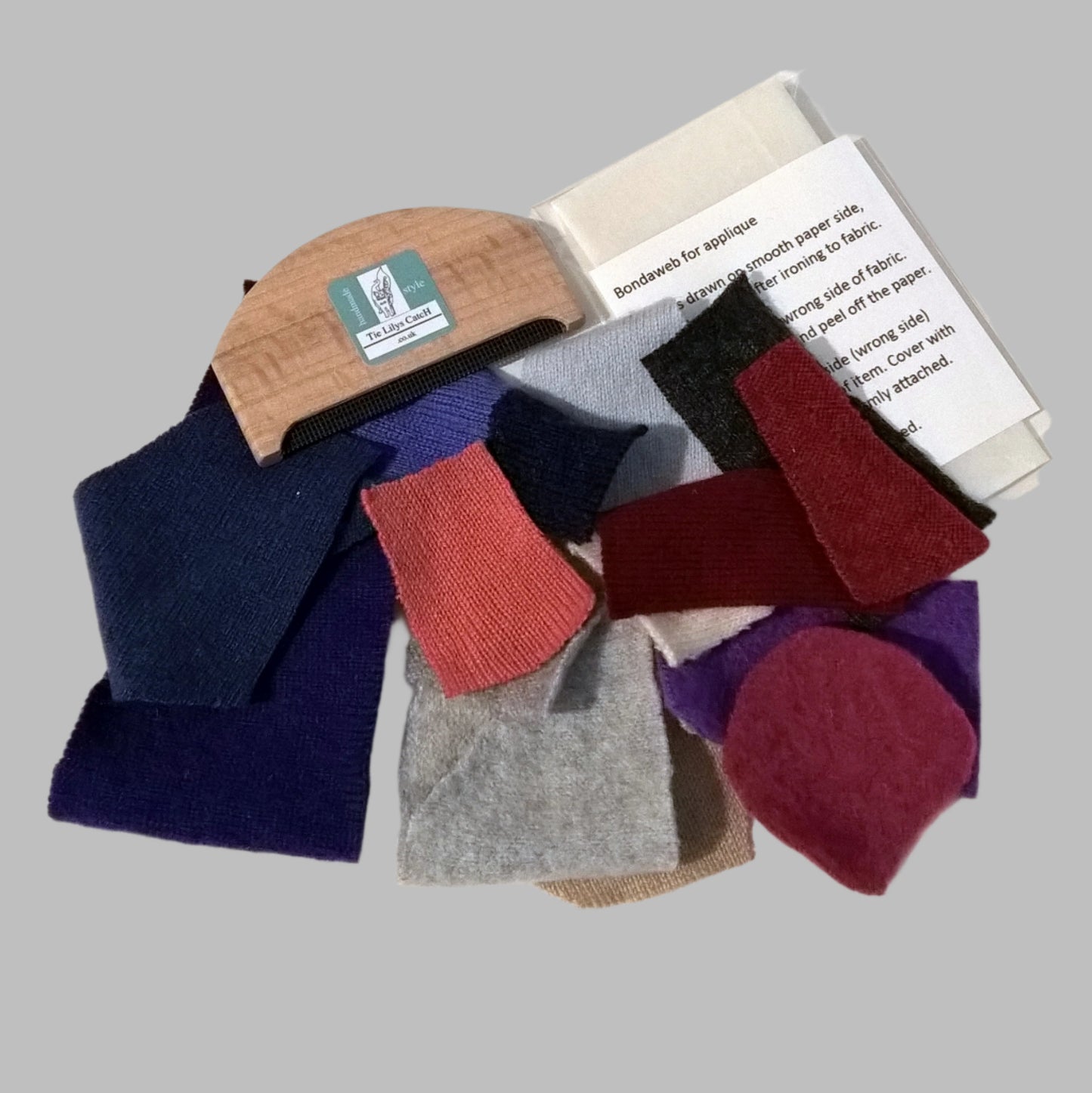 - Pure cashmere pieces - various sizes and colours for under patches and top applique (colours and sizes will vary as due to availability)